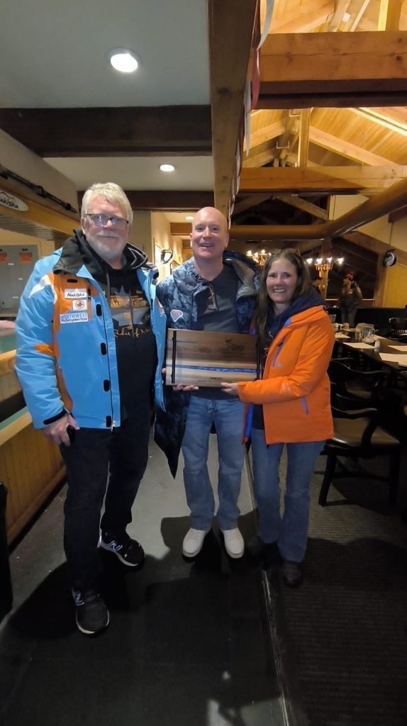 The Saturday night Gala was fantastic at the Finish Line Lounge, with Nakiska GM Jan Sekerek, head chef Jeremy, and the servers all providing an unbelievable smoked brisket and atmosphere to boot. The Master SG and GS awards were handed out, and competitors were given a sneak peek on how the overall age handicapped standings were shaping up. Everyone also got to look at the Rides of March auction items. A huge shout out to Irene Collins and Eveline Lefebvre for their tireless work, as well as all the sponsors who provided fabulous items to bid on.